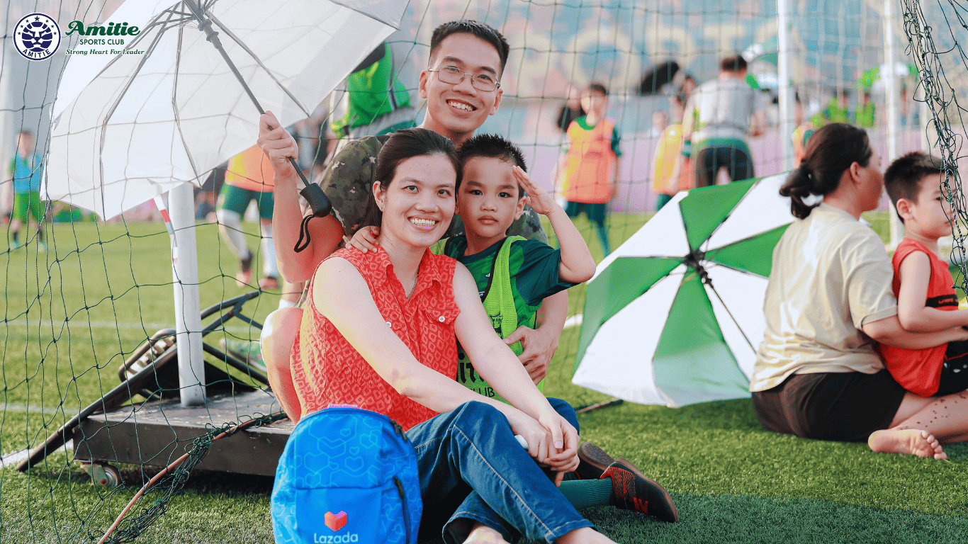 Ba mẹ không cần phải là chuyên gia bóng đá, chỉ cần dành thời gian quan sát, trò chuyện và cổ vũ con. Tại Amitie, ba mẹ luôn được khuyến khích đứng bên lề, lặng lẽ dõi theo từng bước chạy, từng nụ cười của con. Khi nhìn con tung tăng trên sân, chạy theo đồng đội hay reo lên vui sướng sau một pha ghi bàn, ba mẹ sẽ cảm nhận rõ hơn niềm đam mê và cảm xúc chân thật trong con.