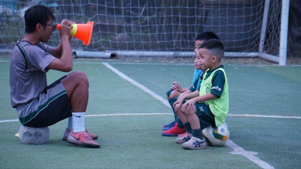 Bên cạnh việc rèn luyện kỹ thuật bóng đá, huấn luyện viên tại Amitié cũng chú trọng hướng dẫn trẻ cách phản ứng khi gặp khó khăn hoặc khi mắc lỗi. Trẻ được khuyến khích nhìn nhận vấn đề một cách tích cực, biết chịu trách nhiệm và cố gắng cải thiện trong lần tiếp theo. Những bài học nhỏ này giúp các em xây dựng sự tự tin, tinh thần kỷ luật và khả năng làm việc nhóm.